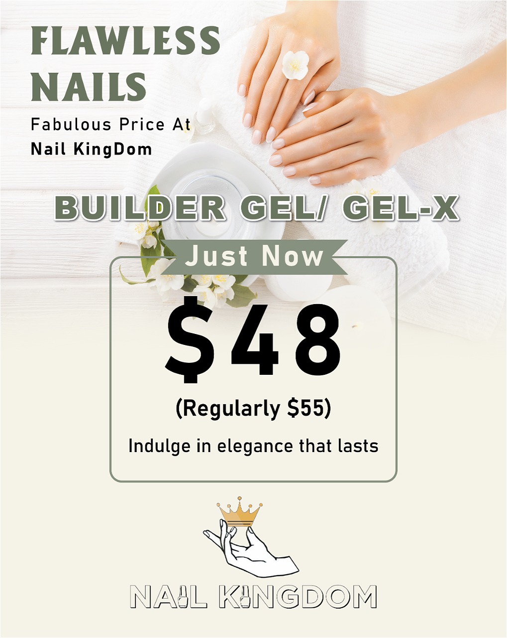 Step into luxury at Nail Kingdom Spa & Lounge, your ultimate destination for indulgent self-care and flawless beauty. We’re more than just a nail salon – we’re a sanctuary where elegance, comfort, and top-tier service reign supreme. Whether you’re treating yourself to a serene spa day or prepping for a night out, our skilled professionals are here to pamper you with precision and style. From lavish manicures and pedicures to rejuvenating spa treatments, we craft every experience to make you feel like royalty. Come unwind, sip something bubbly, and let us elevate your self-care game – one royal treatment at a time.